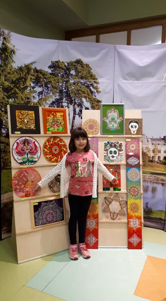Az alkotói tevékenységem részese lányom és unokám szintén nagy érdeklődéssel kezdett részt venni, így látva lelkesedésüket, hozzáállásukat, ezen a nyomvonalon elindulva folyamatos tanfolyami képzéseken vettünk részt. Anasztázia unokám tehetsége fejlesztésre ösztökél, kezei nyomán könnyen készülnek "művei"Lányom úgyszintén beleszeretett az üvegfestésbe, és együtt fejlődünk tovább, hogy szemet és lelket gyönyörködtető alkotásokat készítsünk! Üvegmandalákkal kezdtük, majd csakra sort üvegre ,-üvegképek, és 3D üvegfestés technika. Közben a Piktor Tanoda (Bp.) Work Shoapjain kezdtem el Anasztáziával farost Akrill képeket készíteni, tovább menve a tanulásban Fluid festés, pontozó kavicsfestés, Talizmán "ékszer" készítés, és még más kreatív technikákkal megfestett képek.