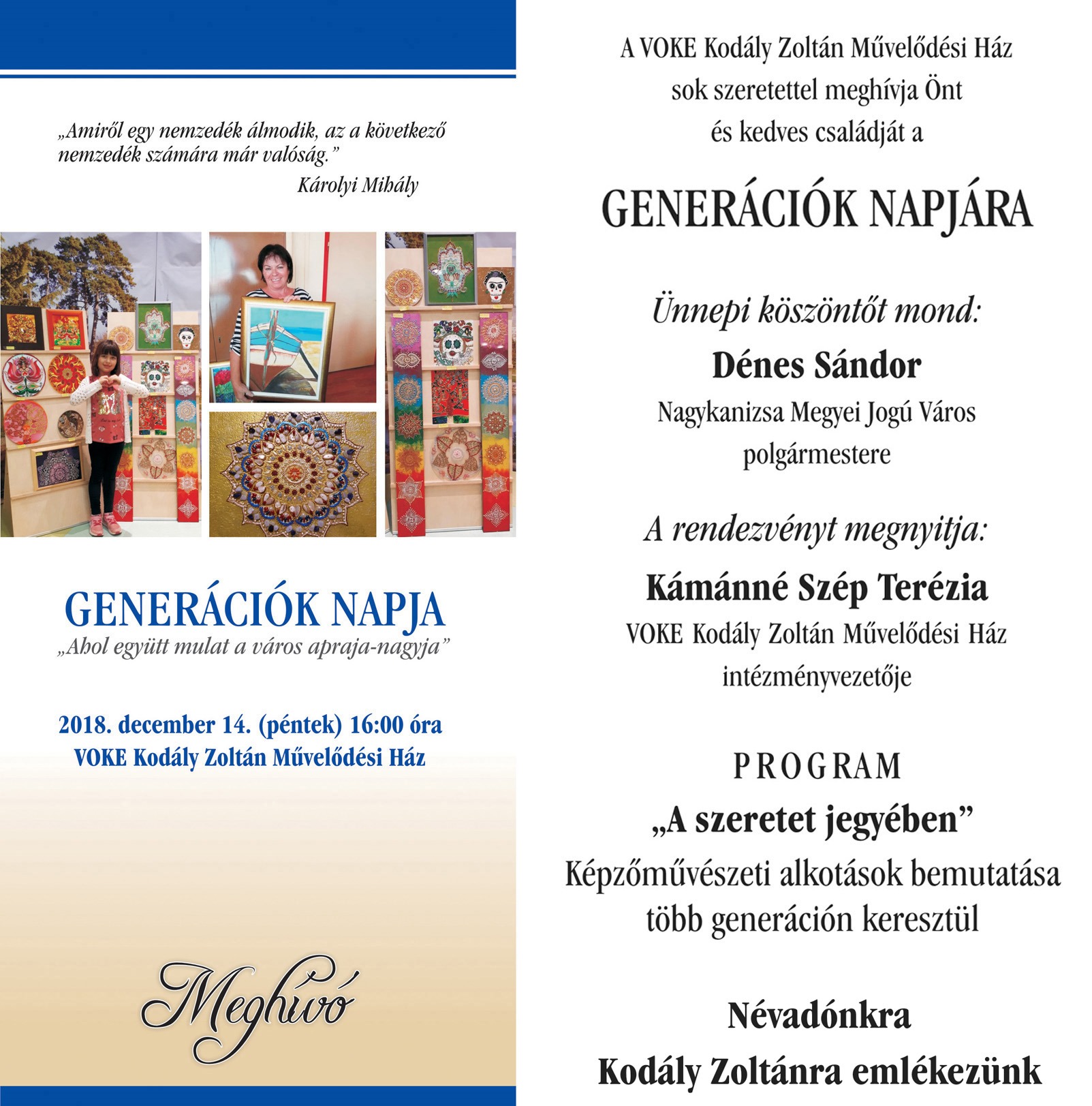 A nagyközönség előtt alkotásainkat bemutattuk a Keszthelyi Természetgyógyász napon és a Nagykanizsai Meridiántorna 3-2-1 Egészségnapján a Könyvtárba, valamint Önálló Generációs kiállításunk Nagykanizsa Voke Művelődési házban 2018.12.14-19.-ig